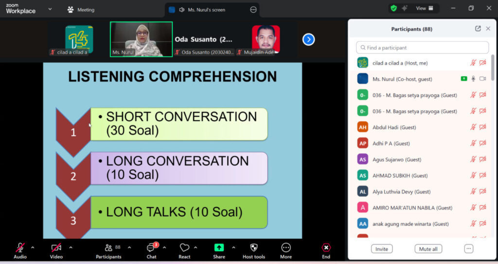Kegiatan yang dilakukan secara daring melalui platform Zoom ini berlangsung interaktif. Para peserta aktif dalam simulasi tes, latihan soal, serta sesi umpan balik langsung dari para instruktur CILAD yang berpengalaman..